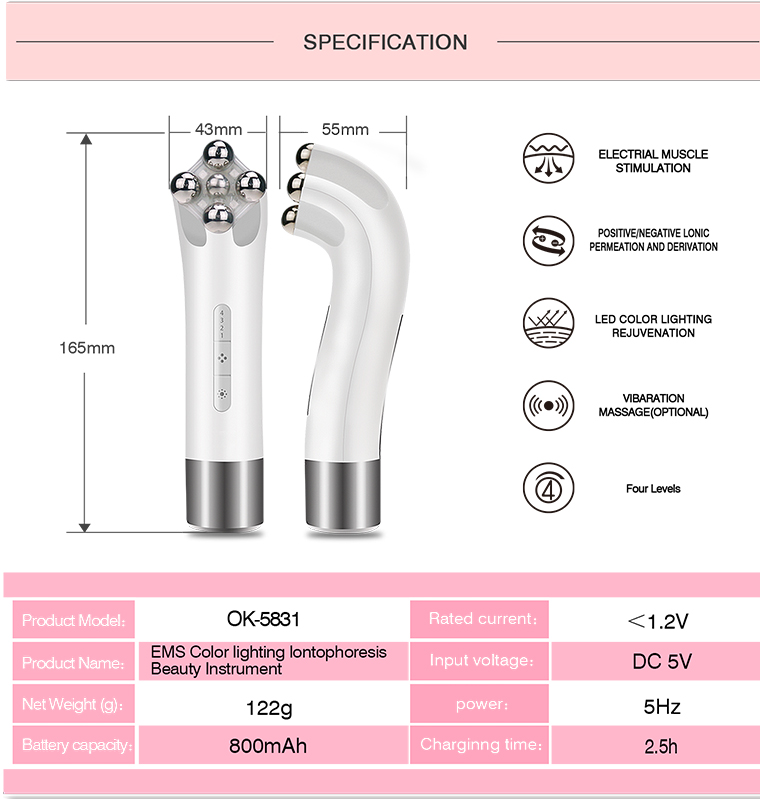 ФУНКЦИЯ ЗА ОХЛАЖДАНЕ С ЛЕД -- Имайки предвид, че функцията за радиочестотно нагряване би отворила порите по време на работа, ние проектирахме функция за бързо охлаждане за 10 секунди за лицето и очите, за да помогнем за свиването на порите.