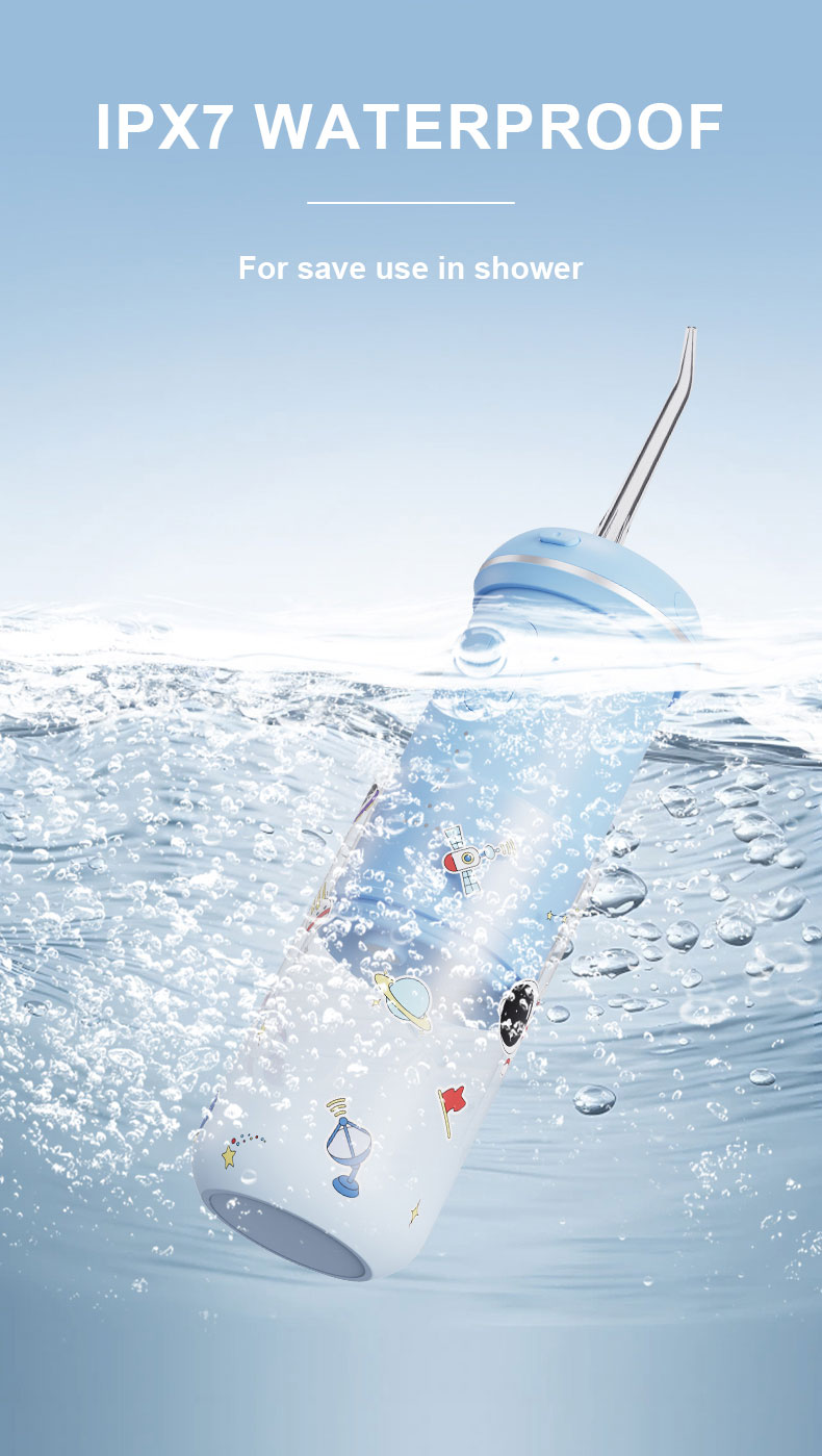 - Gentle and Safe, Deep Cleaning: Designed and recommended by pediatric dentists, made of baby food grade materials, safety and healthy, gentle and non-irritating stable water pressure makes children love to rinse their teeth. IPX7 waterproof, safe for use in children's bathrooms.