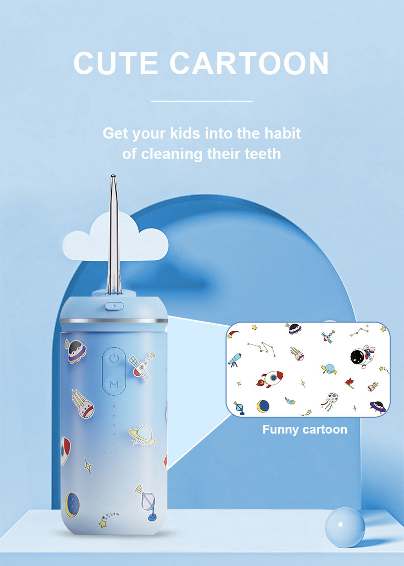 - Deep Cleaning: Equipped with 0.6mm ultra-fine dual water jets, the kids water dental flosser has a larger impact area and more uniform pressure. It can effectively achieve deep cleaning while protecting children's gums, cleaning tartar buildup.