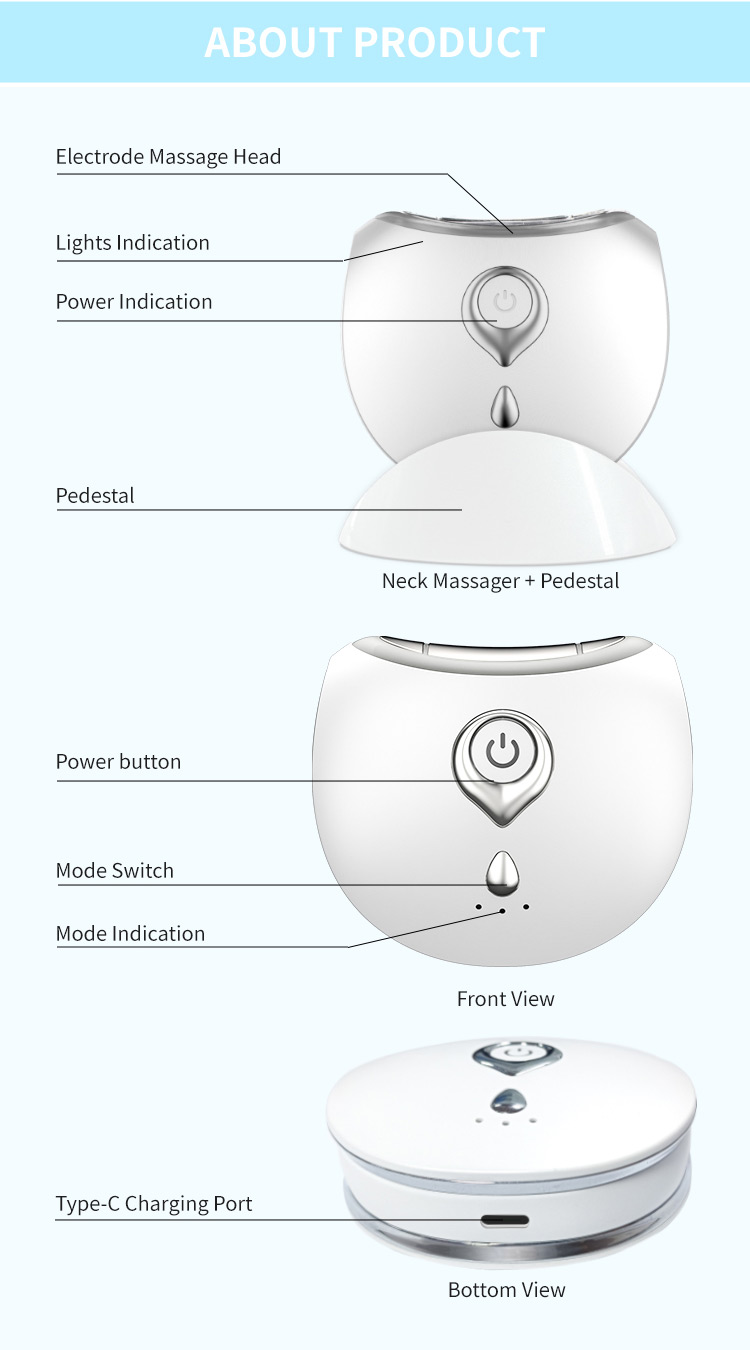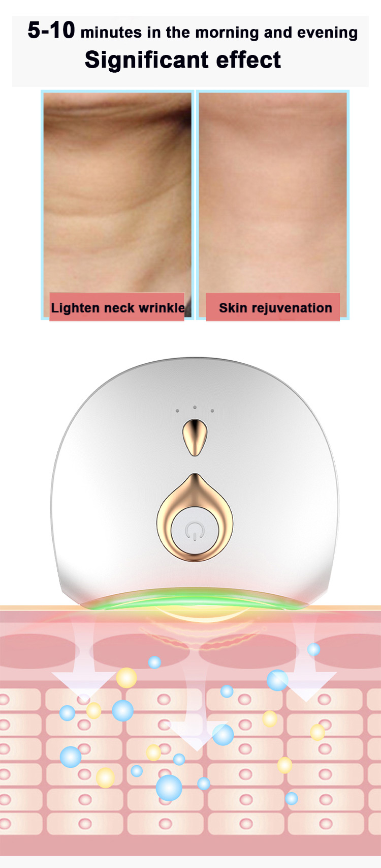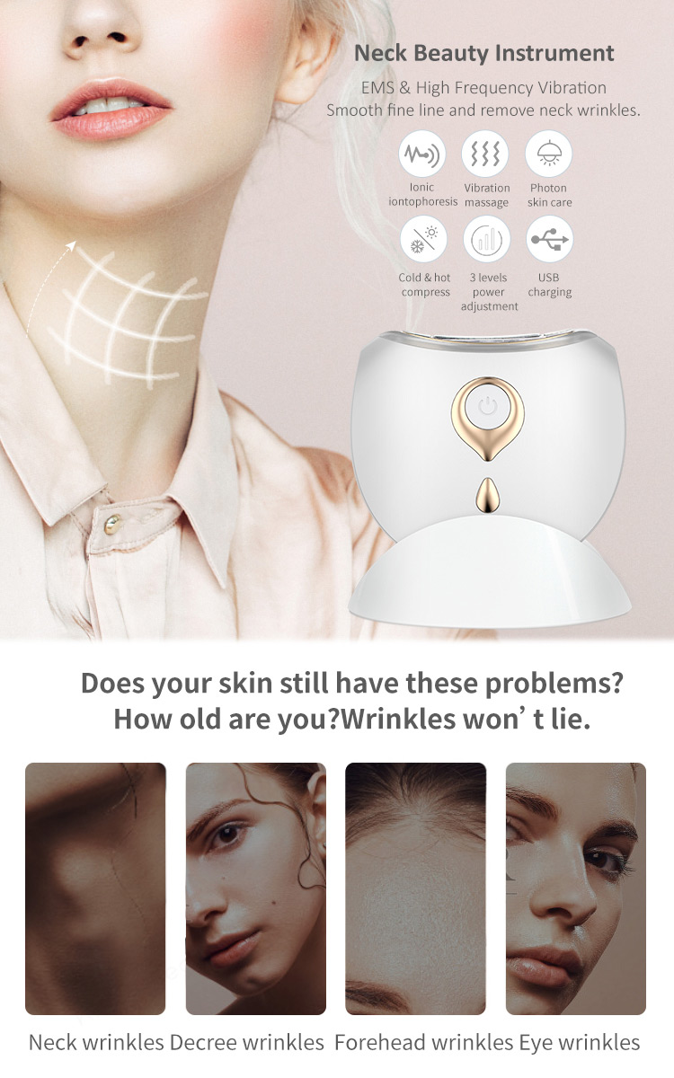 EMS и високочестотна вибрация, изглаждане на фините линии и премахване на бръчките по шията