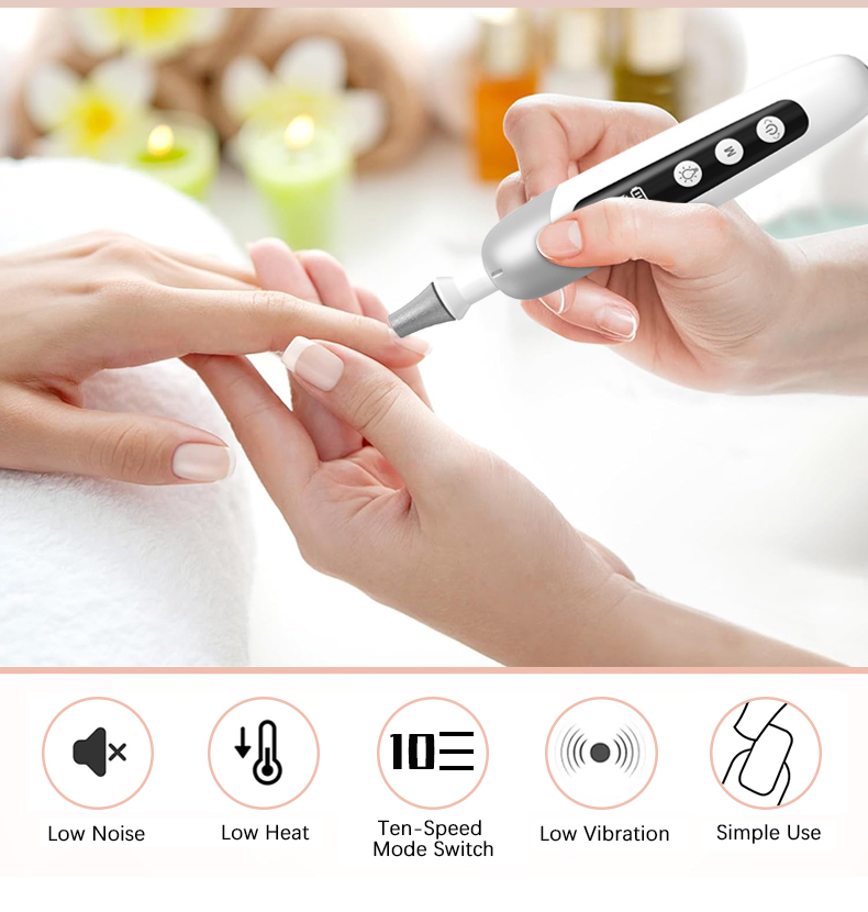 - БЕЗЖИЧНО И ПРЕЗАРЕЖДАЕМО: Безжичната електрическа бормашина за нокти е идеална за пътуване и предлага впечатляващите 10 часа работа. Удобен инструмент за педикюр за крака и всички ваши нужди за мани педи. Нашата пила за нокти е подходяща за естествени, акрилни, гел и прахообразни нокти