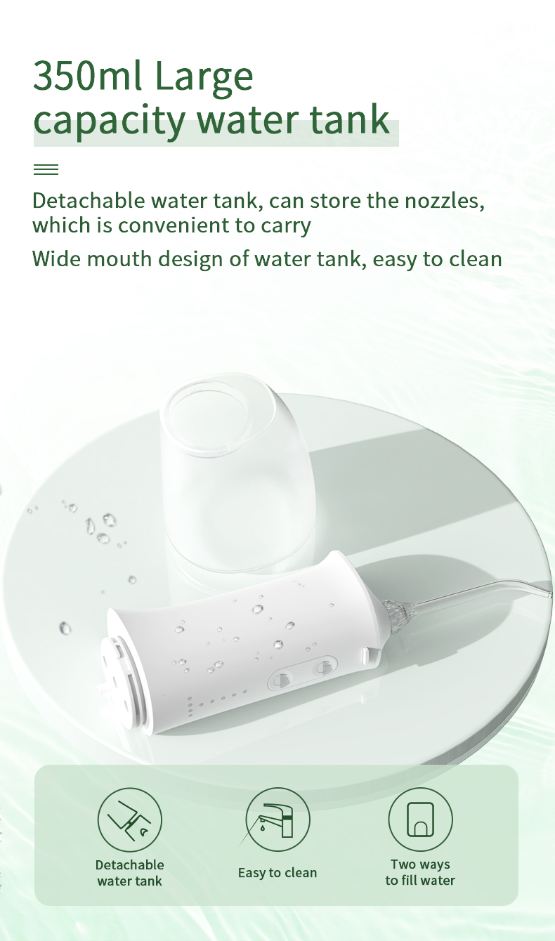 Този воден конец за зъби разполага с модернизиран резервоар за вода от 350 ml, два пъти по-голям от капацитета на други стари модели, елиминира необходимостта от често зареждане и прави почистването на устната кухина по-удобно и ефективно