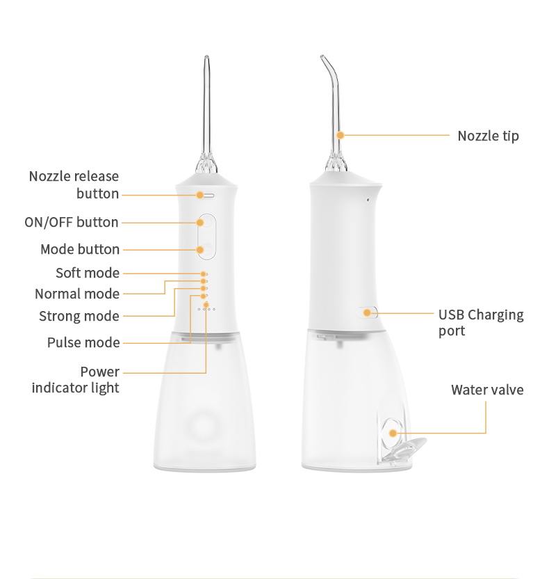 Име на продукта: USB зареден преносим иригатор за устна кухина, акумулаторен водоструен конец, водоустойчив Ipx7 конец за зъби