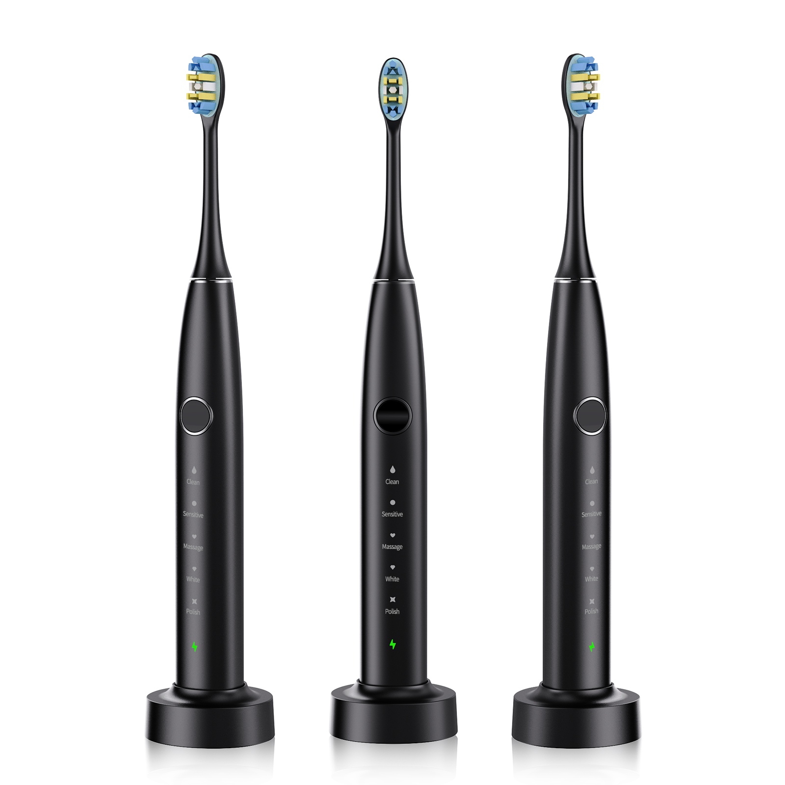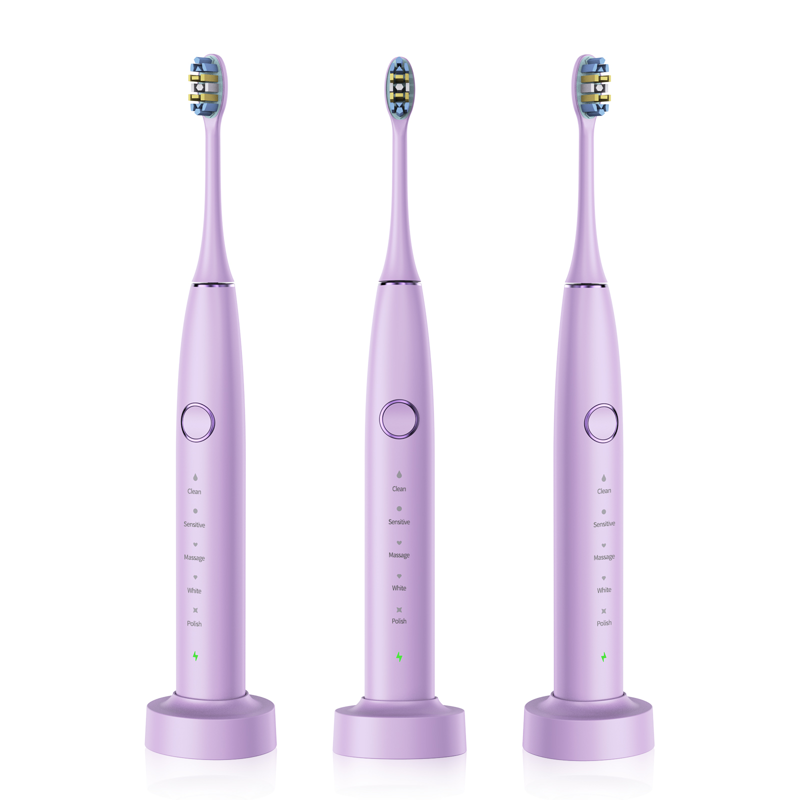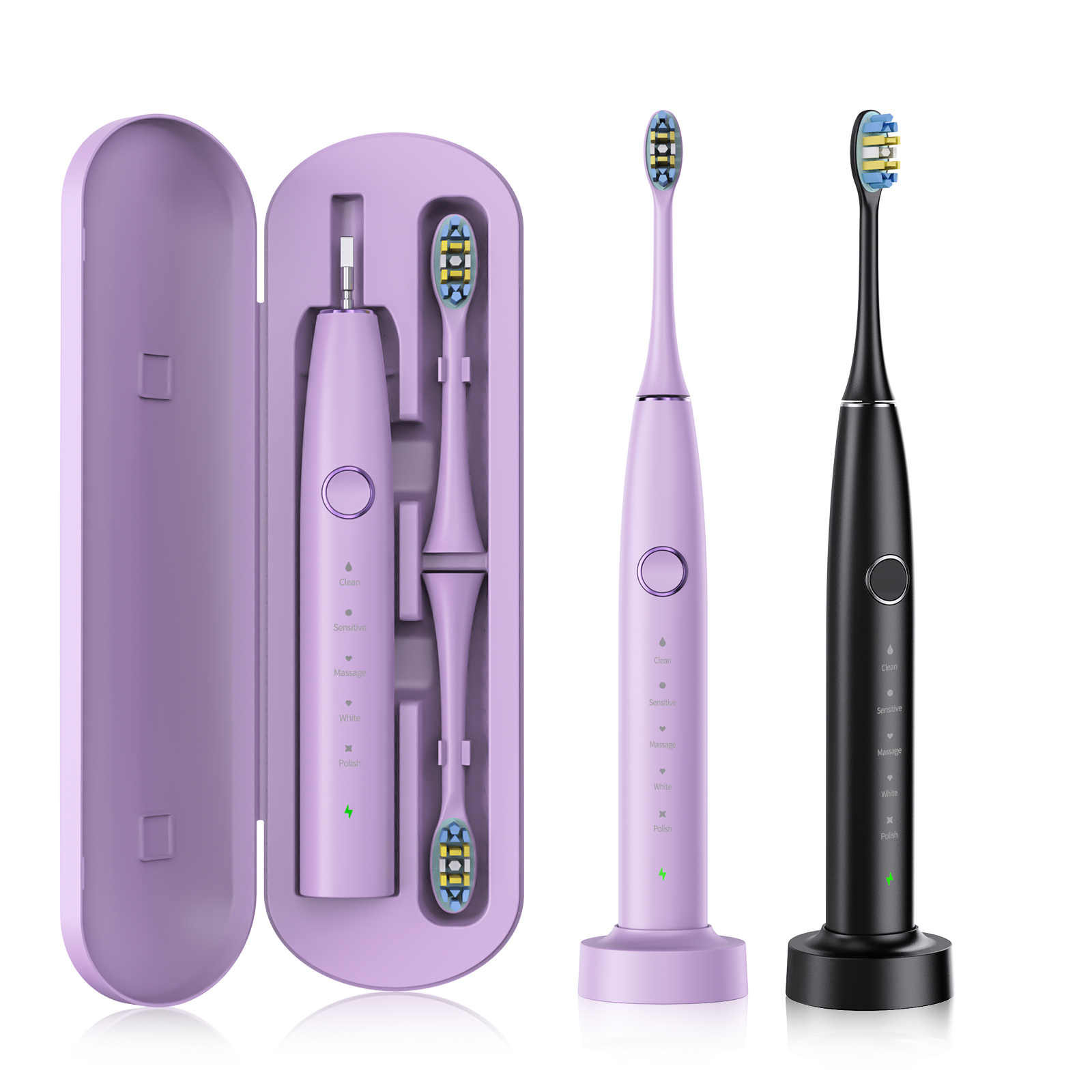 - 5 ВИСОКОЕФЕКТИВНИ РЕЖИМА НА ЧЕТКАНЕ - Чисто (нежно), Бяло (силно), Полиране (силна инвертирана честота), Меко (нежно инвертиране на честотата) и Чувствително (меко), за да отговарят на различни състояния на зъбите или венците, така че можете да избирате различни режими според вашите предпочитания и препоръките на зъболекаря.